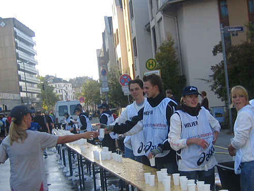 Alle 5 km Verpflegung und Getränke (Wassser, Iso, Tee, ab km 30 Cola, Bananen, Äpfel, Trauben, Power-Riegel und –Gel) dazwischen zusätzlich Getränestationen.