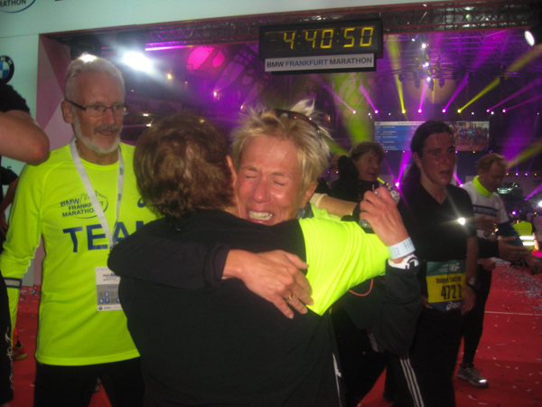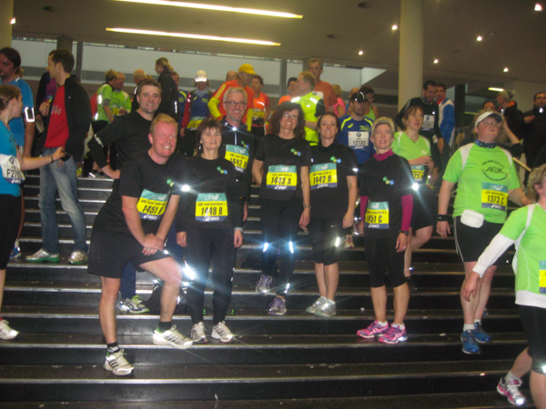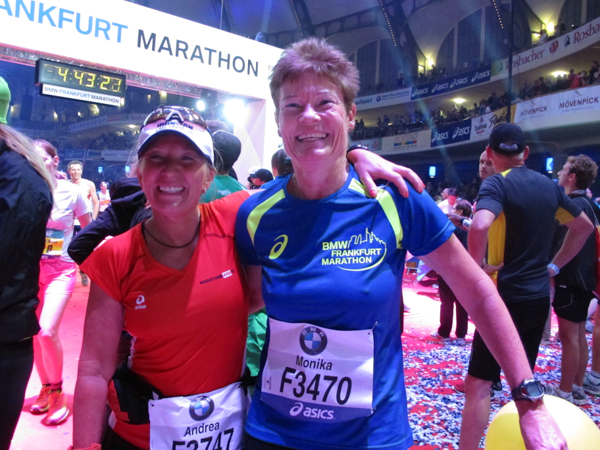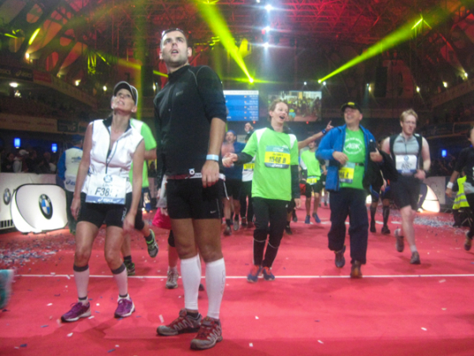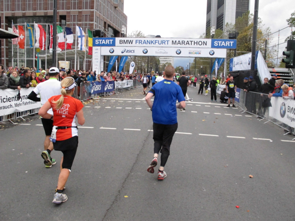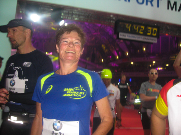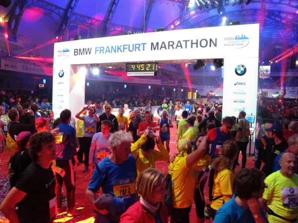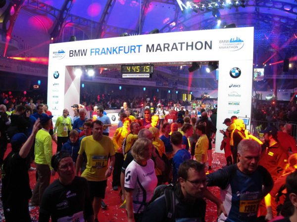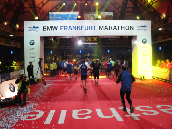 Dafür aber für Sekunden eine richtig fette Show. Konfettikanonen für die Sieger, die Schnipsel bedecken den Boden und schimmern in allen Farben der Scheinwerfer. Genau dafür liebe ich den Frankfurt Marathon! Ich bin nächstes Jahr wieder dabei wenn es heißt: „Noch einmal Würfeln und zurück auf Los“.