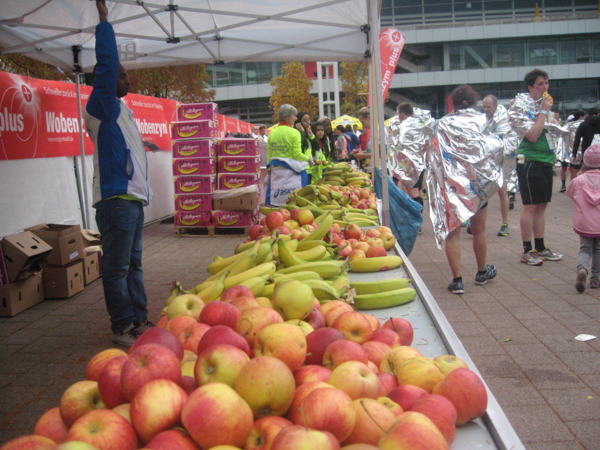 Verpflegung: Alle 5 km sind die Versorgungsstände mit Getränken aufgebaut. Ab km 15 bis ins Ziel gibt es zusätzlich Bio-Bananen. Bei km 30, 35 und 40 gibt es zusätzlich Coca Cola. An allen Ständen stehen Wannen zum Eintauchen bereit