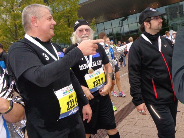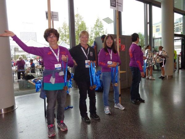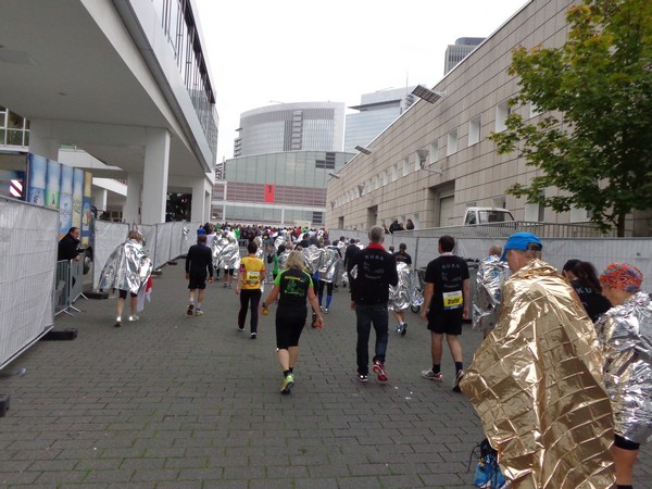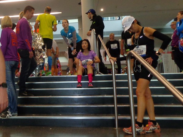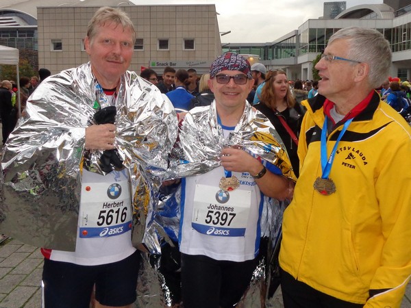 Um ehrlich zu sein, Desi hat diesen Marathon ausgewählt. Hast du gut gemacht! Wir anderen haben nur nachgezogen. Desi kommt wenig später glücklich ins Ziel. Birgitta treffen wir draußen kurz vor ihrem Zieleinlauf, sie hat es also doch noch rechtzeitig zum Start geschafft, mit Chip!