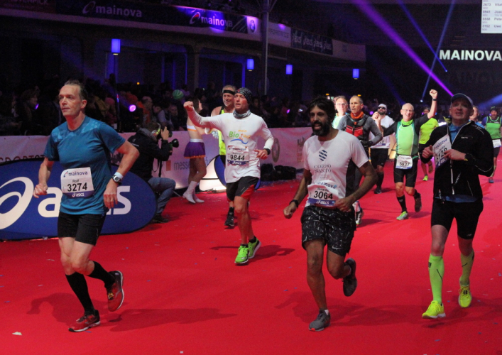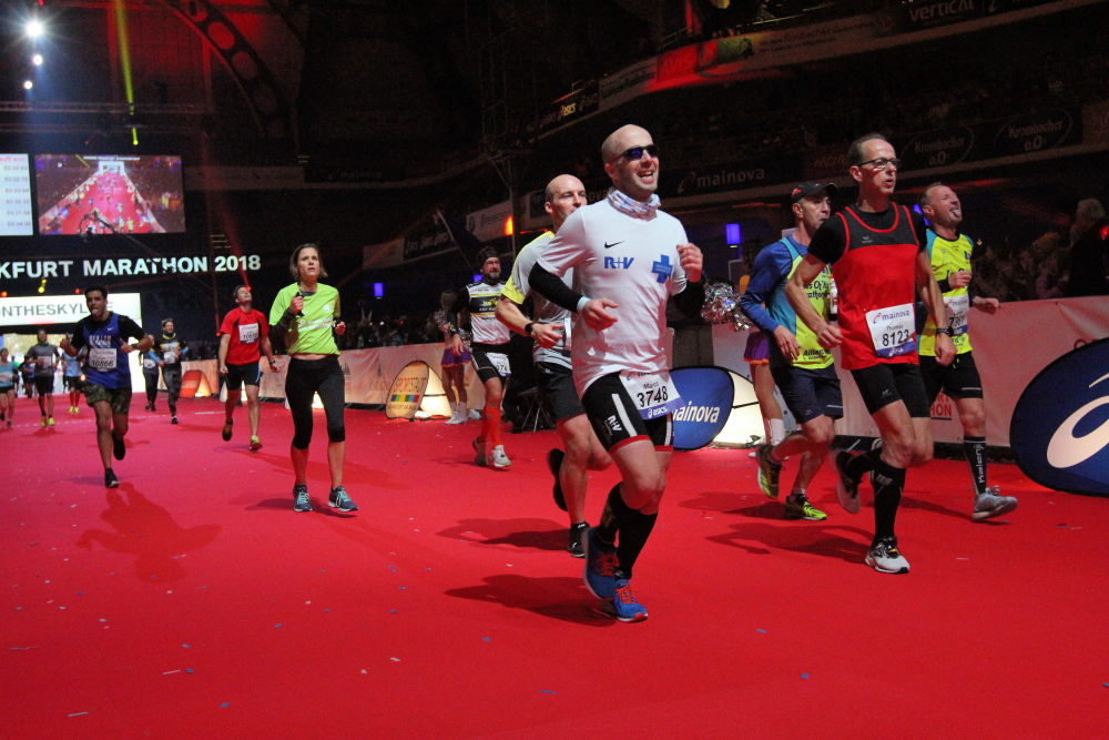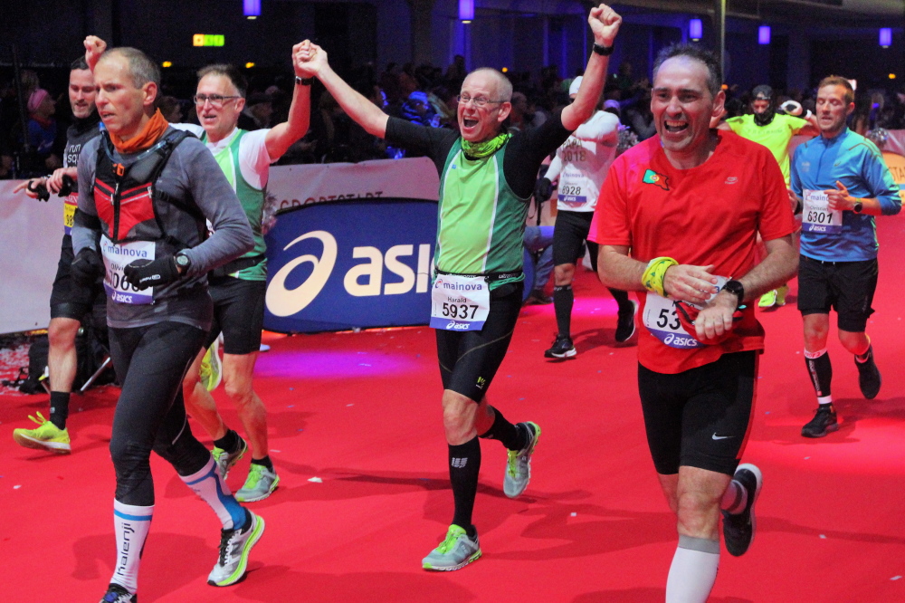 Die letzten 700 Meter zur Festhalle kurve ich an Staffelläufern vorbei, ich muss links, rechts überholen. Dann eine schmale Gasse, ich spüre jeden Brüller der unzähligen Zuschauer im Gesicht. Es sind zärtliche Küsse einer großen Gemeinschaft laufbegeisterter Fans der 18 jährigen Laufmashine! Ich bin heute eine Minute langsamer als bei meinem Debut vor 18 Jahren. Da muss ich grinsen, denn James Brown hat Recht: Ich bin eine Maschine!