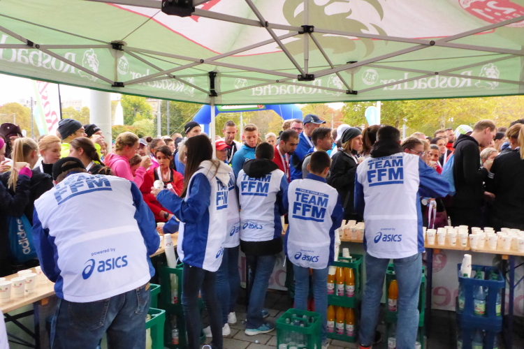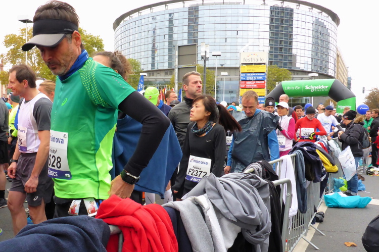 Vor 18 Jahren bin ich in Frankfurt meinen ersten Marathon gelaufen, 4:27. Damals hatte noch die Informationsgemeinschaft Deutsches Ei uns ein Sixpack (Eier) in den Starterbeutel gelegt. Dieses Jahr gibt es alkfreies Bier, das ich den netten Damen von der Startnummernausgabe zurückgebe - das Pfandlabel fehlt. Im Veranstaltungs-Magazin gibt es die üblichen Grußworte der Politiker. Zwei Millionen Euro verdient die Stadtkasse an diesem Wochenende zusätzlich. Die Gewerbesteuer stammt übrigens wie die Zeitumstellung aus dem Kaiserreich.