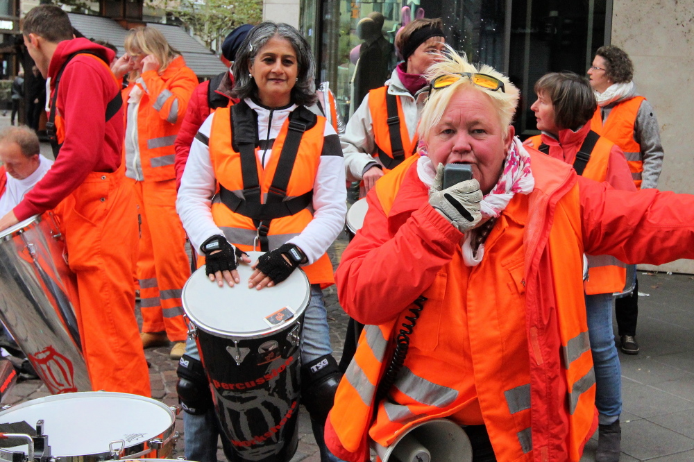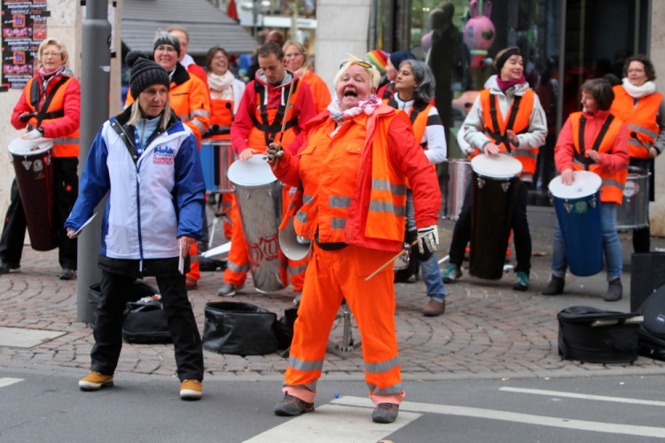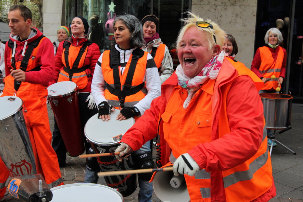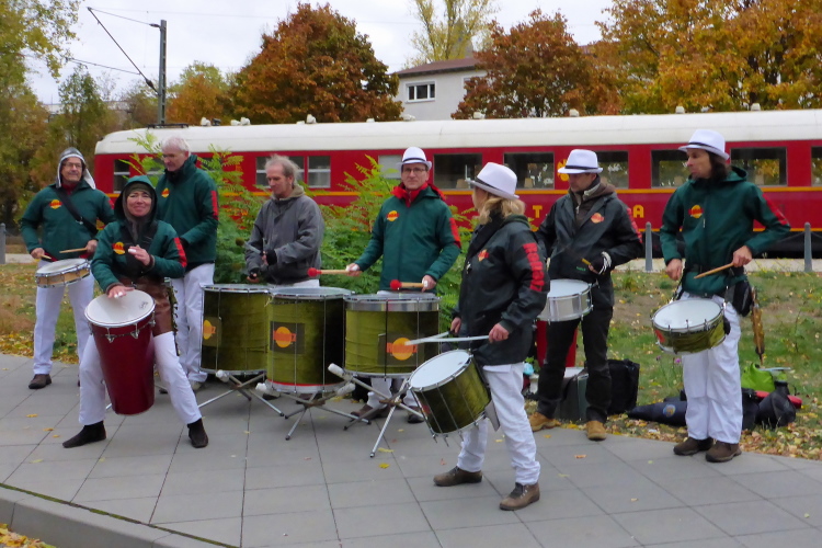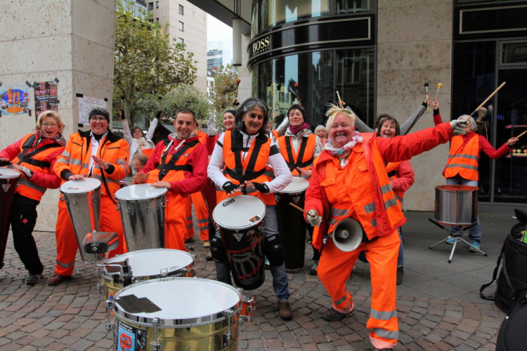 Vor dem Frankfurter Hof wirbeln die Japaner auf ihre Trommeln. Gestern habe ich eine Japanerin gefragt, warum so viele ihrer Landsleute mitlaufen. Antwort: „Weil wir Japaner sind!“