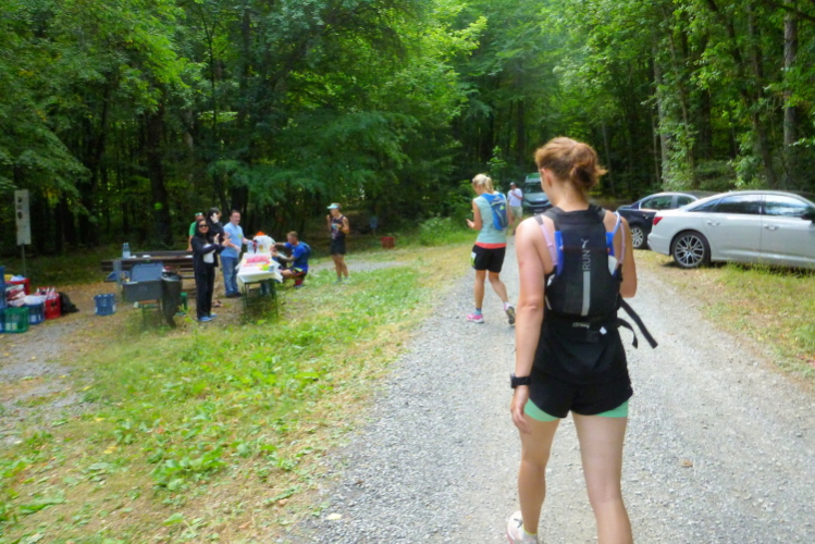 Viel zu fotografieren gibt es nicht mehr, so erreiche ich bei Kilometer 56,5 die finale Tanke beim Waldparkplatz Talwald. Ich verpflege, schneller als zuvor, denn, so der Helfer, „du hast noch gut sieben Kilometer zum Ziel“. Als ich mich auf den Weg mache, kommt Benedikt.