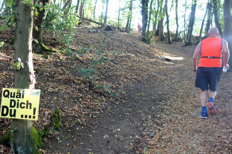 Das Laufen im schönen Naturpark Rhein-Westerwald über Wurzel und Steine ist ein Vergnügen. Die Strecke führt teilweise über den Westerwaldsteig, ein "Qualitätsweg Wanderbares Deutschland". Das ist ein Wanderweg über 235 km in 16 Etappen zwischen Herborn (Hessen) und Bad Hönningen am Rhein. Ich bleibe aber heute lieber beim Bergsprint hinauf zur Malberghütte.