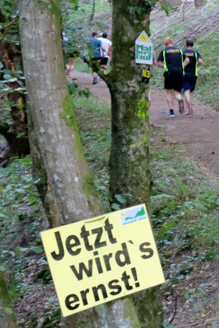 Ich freue mich auf eine schöne Abwechslung im Trainingsalltag. Der Malberglauf ist für mich eine willkommene Auflockerung meines Bergtrainings für längere Läufe mit vielen Höhenmetern. 370 Hm erwarten uns heute wieder aufwärts, 100 Hm müssen abwärts bewältigt werden.