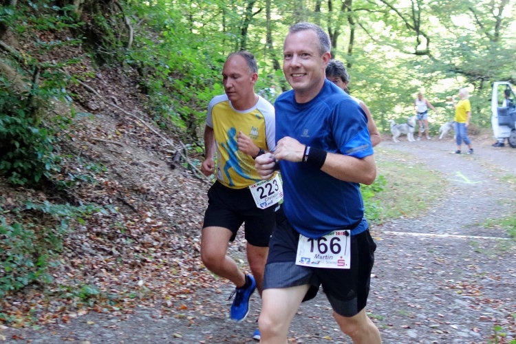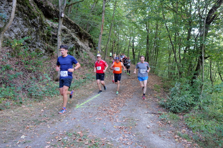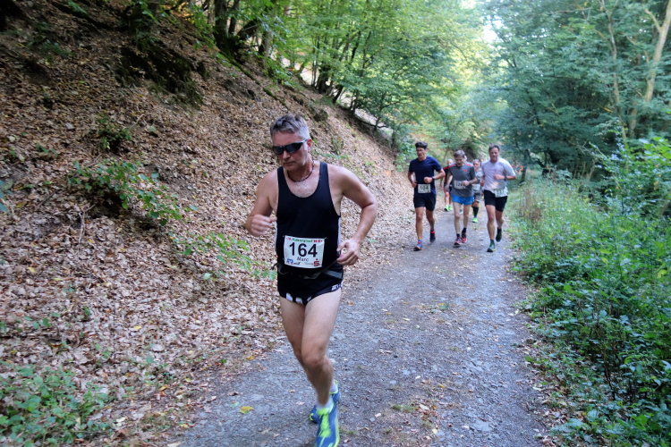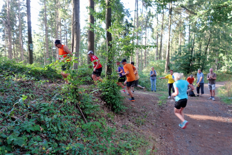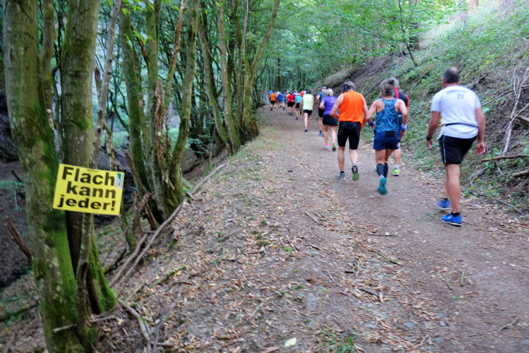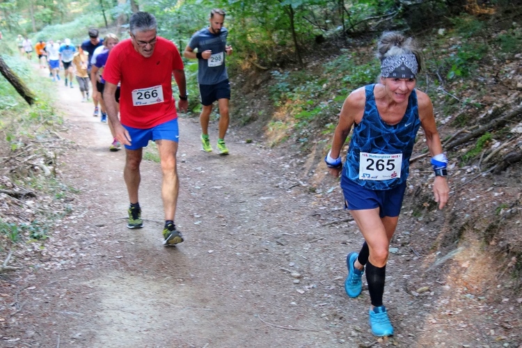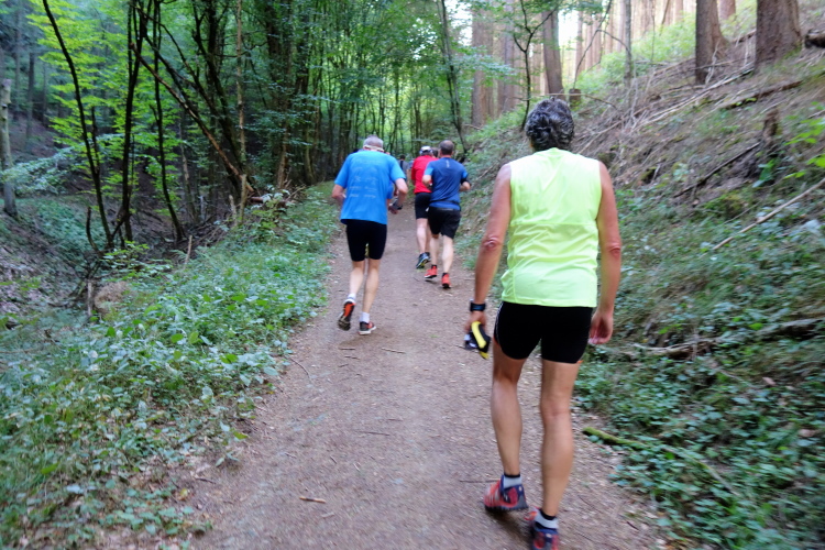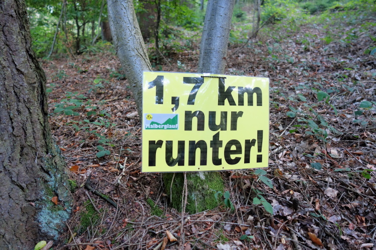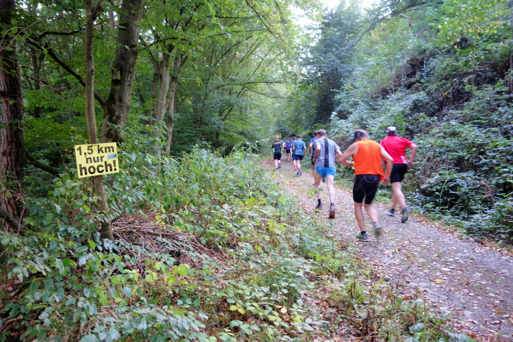 Gottlob ist es heute mit knapp über 20 Grad nicht mehr so heiß wie die letzten Wochen mit deutlich über 30 Grad. Obwohl, hier im Wald ist es angenehm. Mitten im langen Aufstieg kommt ein Knick. Die Steigung wird stärker und ich falle in einen Gehschritt. Rechts um eine scharfe Kurve und für einen Moment dürfen wir etwas aufatmen. Es ist für ca. 100m etwas weniger ansteigend. Doch dann kommt nach dem Stollen Pluto ein nächster kurzer steiler Stich. Egal, rauf!
