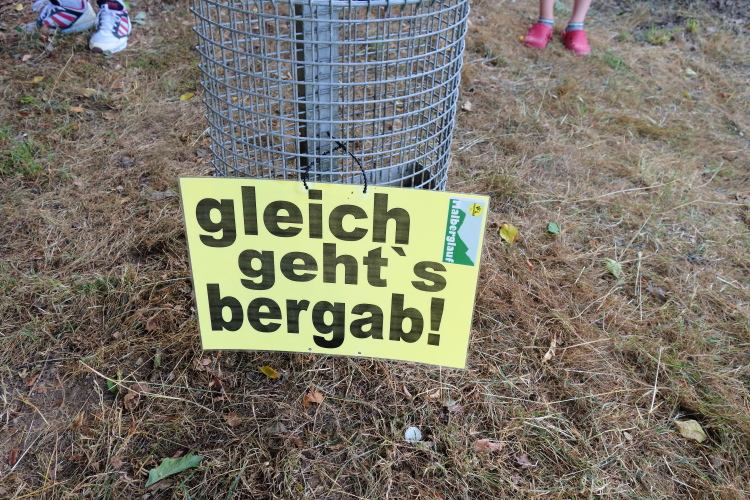 Ich kann schon die Alphornbläser kurz vor der Malberghütte hören. Doch zunächst heißt es den Wurzeltrail verlassen und die wie immer gut gesicherte K 3 zu queren. Noch einige steile Meter durch den Wald hinauf und die Wiese unterhalb der Malberghütte liegt vor uns. Mit Blick auf die Hütte dürfen wir einige Meter die Wiese queren und Luft holen für den finalen Schlussspurt an den Alphornbläsern vorbei hinauf zur Hütte.