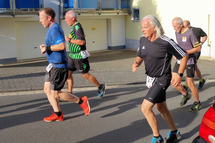 Dann fällt pünktlich der Startschuss und vorne geht die Post ab. Ist nix für mich. Ich will nur nicht von den Nordic Walkern überholt werden. Die dürfen eine Minute nach uns auf die Strecke.