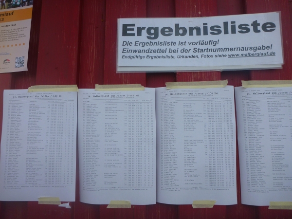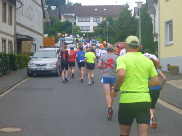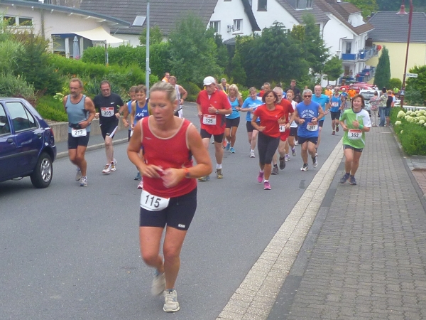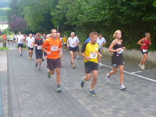 Der Malberglauf hat in den letzten Jahren einen enormen Zuwachs an Teilnehmern erfahren. Von 194 in 2008 hat sich die Zahl der Läufer verdoppelt. Fast 400 Läufer und Walker stehen am Start. Punkt 18.30 Uhr ist es soweit. Der Startschuss ertönt und wir machen uns auf den Weg. Eine Minute nach uns dürfen auch die Walker auf die Strecke.