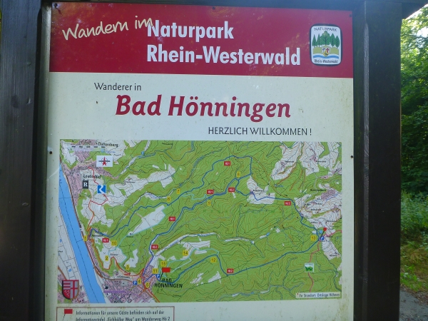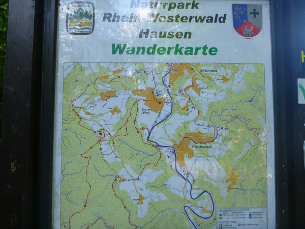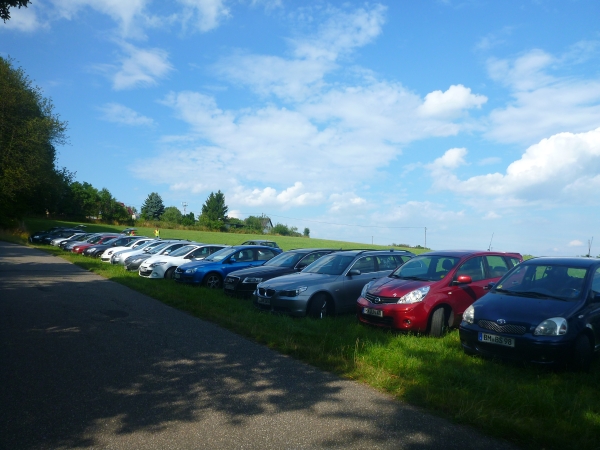 Es geht leicht hinauf und nach 100m ist ein weiterer Parkplatz neben einigen Häusern. Hier ist auch der Abfahrtspunkt für die Shuttlebusse zum Start in Hausen. Wanderkarten zeigen, dass es sich um ein schönes Revier für Wanderfreunde handelt.