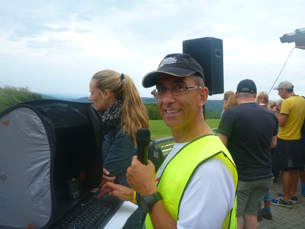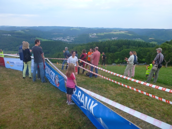 Nach getaner Arbeit reise ich von meiner Arbeitsstätte in Bonn in aller Ruhe zum Malberg an. Vom Rheintal geht es hinauf auf die Höhen des Westerwaldes und rasch bin ich am Ziel. Na fast, etwa 200m unterhalb der Skihütte werde ich von freundlichen Helfern auf eine Wiese zum Parken gelost. Ich bin früh dran und stehe in der ersten Reihe. Diese Platzierung werde ich wohl beim Lauf nicht halten können, denke ich mir und mache mich auf den Weg zur Startnummernausgabe.