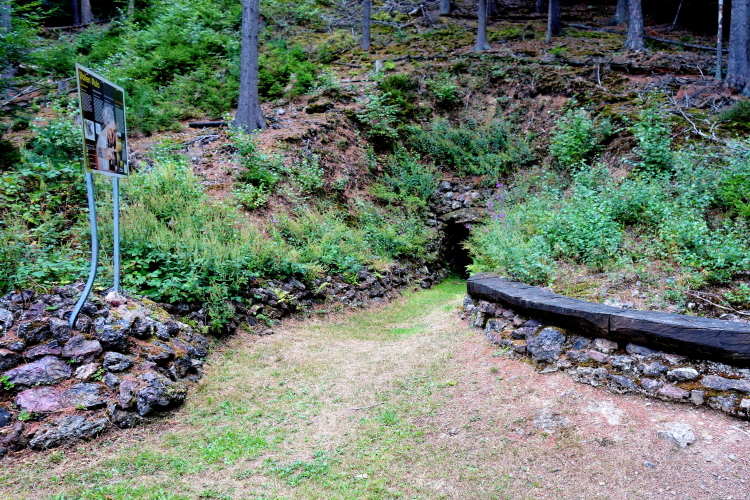 In der Mitte des Aufstiegs wird es nochmals steiler und ich freue mich auf eine kurze Verschnaufpause, in der es wieder für wenige Meter abwärts geht. Erst einmal heißt es rechts abbiegen, vorbei am Stollen Pluto und noch einen kurzen steilen Stich hinauf. Auf dem Weg kommt uns strömendes Wasser entgegen. Die Strecke ist aber unverändert gut zu laufen.