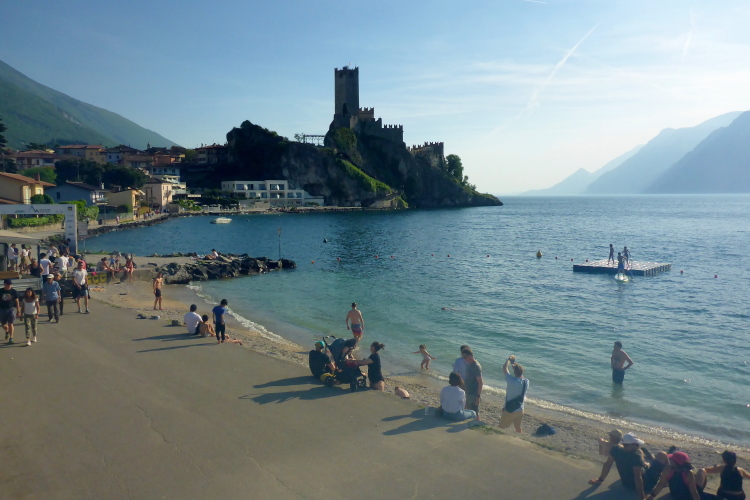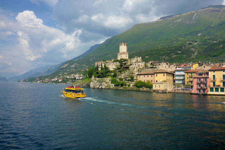 Getarnt als frühsommerlicher Kurzurlaub, kommt auch meine Frau gerne mit. Wir quartieren uns im malerischen Start-Ort Malcesine in einer einfachen Wohnung direkt im Ortskern ein. Der kleine Ort konnte sich trotz des touristischen Ansturms seinen Charme weitestgehend bewahren. Die kleinen Plätze und schmalen Gassen des mittelalterlichen Städtchens und der alte Hafen bilden die perfekte Umgebung, um es sich mit Blick auf das Castello Scaligero und die schneebedeckten Gipfel des Monte Baldo, ein paar Tage gut gehen zu lassen. Dazu liegt Malcesine auch strategisch günstig, um den Gardasee mit Schiff und Bus zu erkunden. Außerdem fährt von hier eine Seilbahn zum 1760 Meter hoch gelegenen Tratto Spino, einem Gipfel des Monte Baldos.