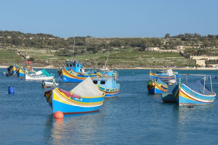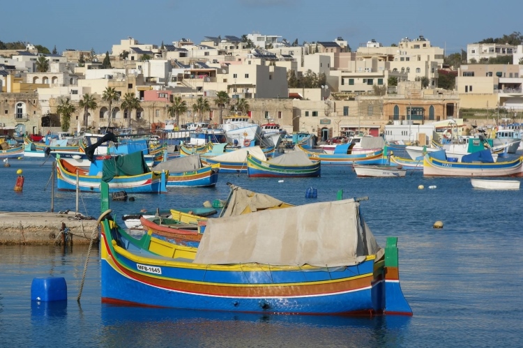 Das pittoreske Küstendorf Marsaxlokk, bekannt wegen seiner farbenprächtigen traditionellen Luzzu-Fischerboote
