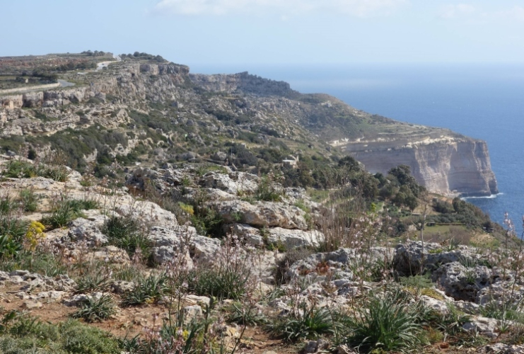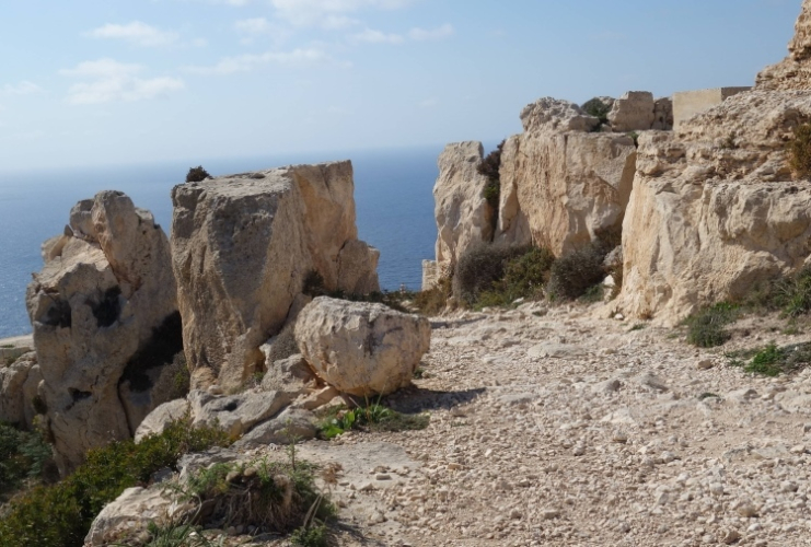 Der maltesische Nationalpark kündigt sich an, Trimm-dich-Geräte inbegriffen. Ein Läufer aus Rügen klagt über den heftigen Sturm, obwohl er als Inselbewohner eigentlich daran gewöhnt ist. Mir selbst und vielen anderen passiert es, dass der führende Fuß vom Wind vor den anderen geblasen wird und man Probleme hat, nicht über seine eigenen Füße zu stolpern. Die Startnummern aus dünnem Plastik knattern im Wind und ich habe als Kontaktlinsenträger Probleme mit dem Staub in meinen Augen. Aber dafür scheint wunderschön die Sonne. Ohne den Wind wäre es sicher zu warm.