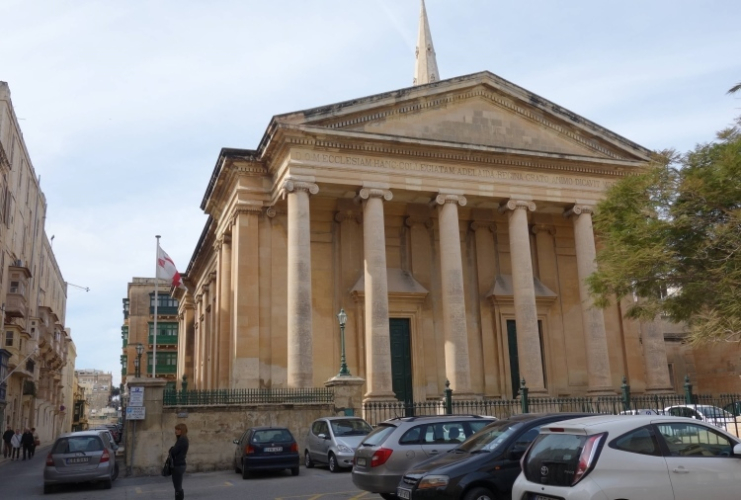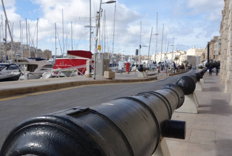 Das grandiose Finale beginnt: Immer am natürlichen Hafenbecken entlang, kommen wir dem Ziel immer näher. Rechts die Silhouette von Valletta. Markant die Kuppel der Karmelitenkirche Unserer Lieben Frau vom Berge Karmel, 1958 bis 1981 neu errichtet. Auch erst aus dieser Zeit stammt die 42 Meter hohe Kuppel. Die Kirche sollte imposanter werden als die anglikanische Pro-Kathedrale St. Pauls davor, die 1839 von der britischen Königswitwe Adelaide gestiftet wurde, da sie auf Malta keine Kirche ihrer eigenen Konfession vorfand. Generationen von Maltesern haben dafür gesorgt, dass es auf der Insel unzählige riesige Gotteshäuser gibt. Jede Gemeinde wollte die eindrucksvollere besitzen. Landesweit soll es mehr als 360 Kirchen sein.