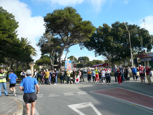 Nach insgesamt ca. 7 Kilometern sind wir wieder in Mdina, unserem Ausgangspunkt. Um 10.00 Uhr startet hier der Halbmarathon. Viele Teilnehmer sind schon anwesend und bilden jetzt zusammen mit der Musikkapelle und zahlreicheren Einheimischen eine ansehnliche Zuschauer- und Stimmungskulisse.