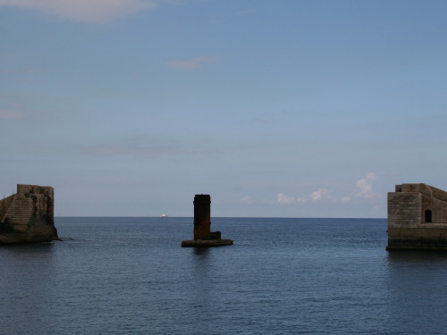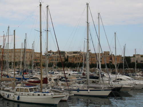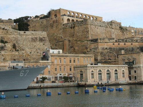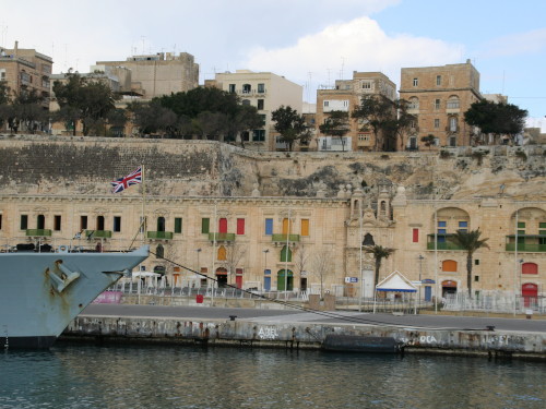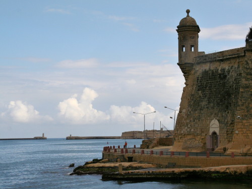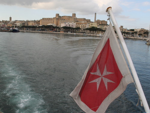 Eine Frage aus der Klugscheißerecke kann ich mir aber nicht verkneifen. Wie heißt das Kreuz in der Maltesischen Nationalflagge? Denkste! Das Malteserkreuz ist auf der Aquavitflasche. Auf der Nationalflagge ist das Sankt-Georgskreuz. Und das hat auch mit dem Hafen zu tun. Im zweiten Weltkrieg kam es nämlich zu heftigen Kämpfen, weil von hier aus der Nachschub für das deutsche Afrikacorps empfindlich gestört wurde. Dafür erhielt die Bevölkerung der Insel vom Englischen König das Georgskreuz verliehen.