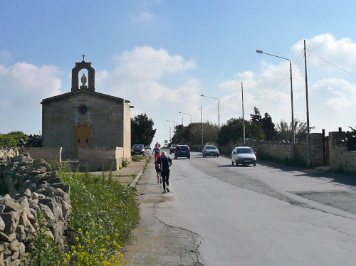 Die Straße führt nach Mdina und ist jetzt stark befahren. Ganz angenehm ist das nicht immer, die teilweise alten Kisten stinken doch erbärmlich. Das wird nicht besser, als wir links Richtung Valetta abbiegen. Viele Menschen sind an diesem herrlichen Tag auf dem Weg in die Hauptstadt, ans Meer oder in die vielen umliegenden Freizeit- und Sportanlagen (Golf, Trabrennbahn, Tennis usw.). Zudem wird dem Auge außer Brachland auf diesem Abschnitt nichts geboten. Engländer und Italiener nehmen das gelassen und sind gut gelaunt unterwegs, während mancher Landsmann die Nase rümpft. Wer was zum Meckern sucht, hier wird er fündig.
