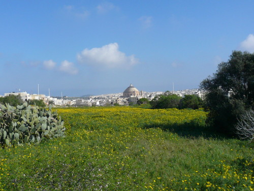 Bei Kilometer 12 kommen wir an etlichen Glasbläsereien und Keramikwerkstätten vorbei. „Handmade Malta Glass“ ist ein Qualitätsbegriff und beliebtes Reisemitbringsel. Am Straßenrand und auf den Wiesen blühen viele Sträucher und Blumen, auf den Feldern wächst Gemüse, das mehrmals im Jahr geerntet werden kann. In jedem Zitronenbäumchen,  jeder Kakteenstaude oder verwachsenen Pinie sehe ich ein Fotomotiv.
