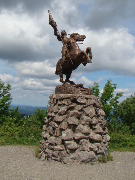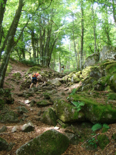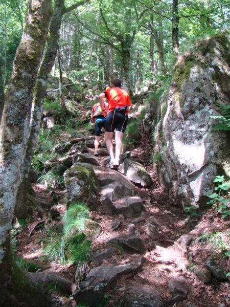 Spektakulär ist auch der Anstieg durch ein Felsenlabyrinth zum „Ballon d`Alsace“. Den Schlussanstieg zum Ballonplateau schafft man über Holzstufen und erreicht die baumlose Kuppe und den höchsten Punkt der Strecke auf 1247 m. Anstatt eines Gipfelkreuzes empfängt die Läufer eine Statue - „Jeanne d`Arc“ hoch zu Ross.
