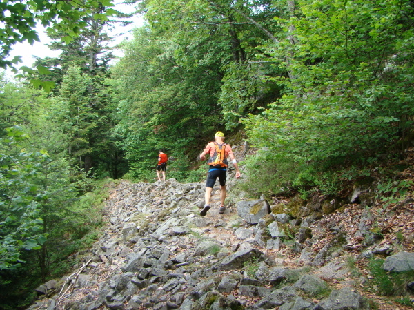 Nach über 8 Std. endete für mich ein phantastischer Trailrun in den südlichen Vogesen. Der Trail führt ständig bergauf und bergab auf teilweise schwierigen Pfaden. Ab und an werden die Läufer auf den Höhen mit herrlichen Ausblicken bis hinüber zum Schwarzwald und den Schweizer Jura belohnt. Hier gibt es alles, was der Berg-, Trail- und Landschaftsläufer sucht