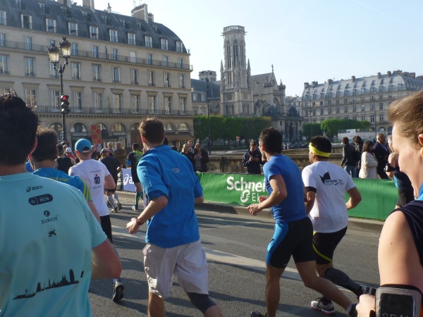 Schon aus der Ferne fällt der markante Wohnturm des Château de Vincennes auf. Es ist neben Versailles und dem Louvre eine der bedeutendsten Schlossanlagen Frankreichs. Dank Metro-Anschluss haben sich hier unglaubliche Zuschauermassen versammelt. Durch deren enges Spalier geht es weiter voran. Auf einmal viel Geschrei hinter mir: Pace-Maker und ihr Gefolge bahnen sich ziemlich rabiat den Weg durch die Engstelle. Ich weiß nicht, wie oft ich getreten werde. Ihr solltet mich mal fluchen hören. Die paar Meter, bis die Straße wieder frei ist, hätten sie auch langsamer angehen können. Das passiert mir später noch einmal, ansonsten ist aber auf den breiten Straßen trotz der hohen Teilnehmerzahl ein vollkommen stressfreies Laufen möglich.