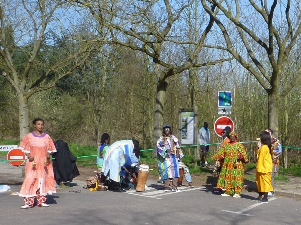 Gleich zu Anfang links der Zoo von Paris. Leider sieht und riecht man die Tiere nicht. Dafür gibt es einen künstlichen Felsen, zu dessen Fuß der zweite Verpflegungspunkt liegt. Danilo in seinem grünen Hemd stupst mich beim Überholen leicht an. Neben ihm Jorge im gleichen Hemd. Judith übersetzt Danilos Hemdaufdruck: „Bouge ton cul!“ - „Bewege deinen Hintern“. Bei Jorge steht – in etwas eigenwilligem Französisch - zu lesen „Sor tois les doigts de cul“. Übersetze ich hier nicht, das müsst ihr selber herausfinden.