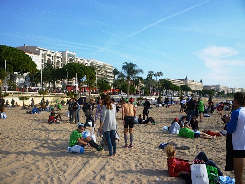 Bei Kilometer 37 oder 38 kündigt uns ein azurblauer Adidas-Bogen an: „Bienvenu a Cannes“. Der Zielort ist erreicht.