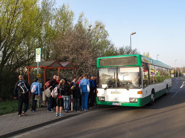 So komme ich mit quietschenden und qualmenden Reifen dennoch rechtzeitig in Grünstadt an, wo die Shuttle-Busse zum Glück auch schon bereit stehen.