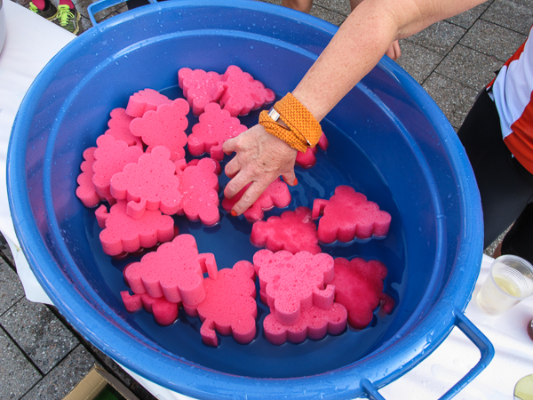 Ich werde mit einem rosafarbenen Schwamm, der in einer mit Riesling gefüllten Wanne schwimmt, geködert. Den tropfenden Traubenschwamm in der Hand frage ich anfängerhaft, was ich damit anstellen soll? So kommt es, dass ich bereits am frühen Morgen, um kurz nach zehn Uhr, den ersten Riesling genieße, quasi im Selbstversuch, als Experiment. Es gab eine Zeit, da wäre es mir nicht im Traum eingefallen, am Tag vor dem Marathon Wein zu trinken und schon gar nicht während des Marathonlaufens. „Die Weisheit eines Menschen misst man nicht nach seinen Erfahrungen, sondern nach seiner Fähigkeit, Erfahrungen zu machen“, sagte George Bernard Shaw. Der sollte es wissen, schließlich ist der irische Schriftsteller ein Nobelpreisträger.