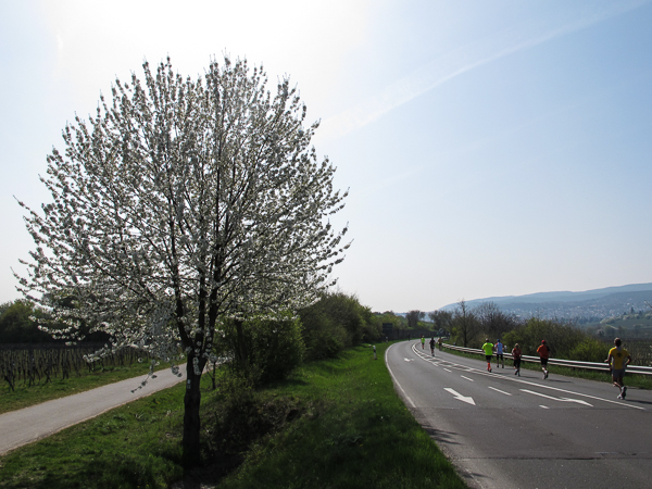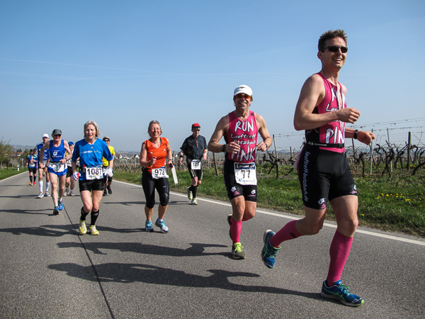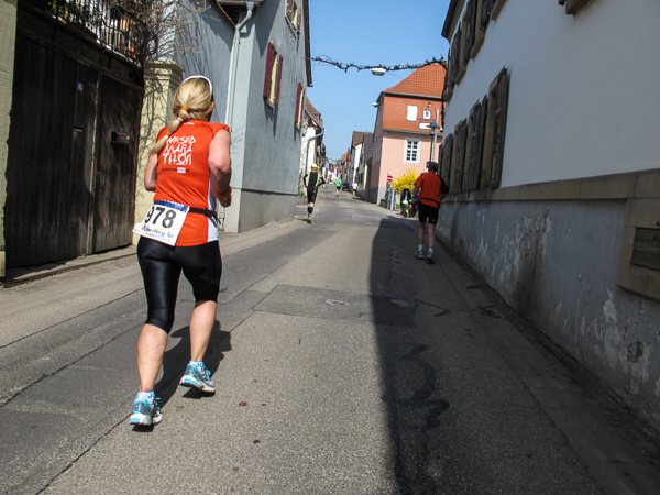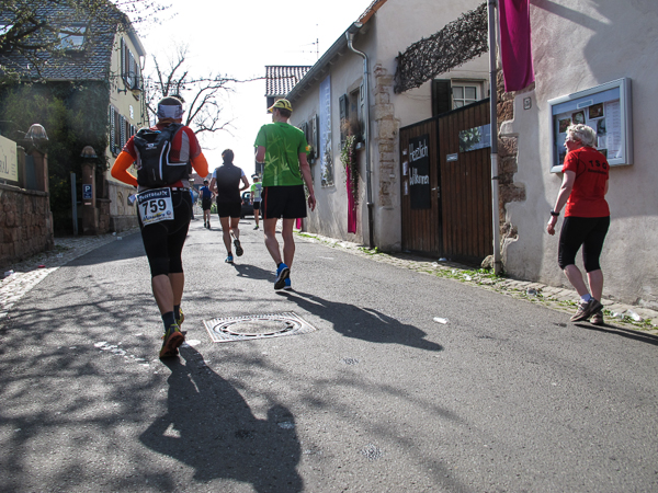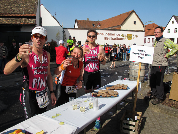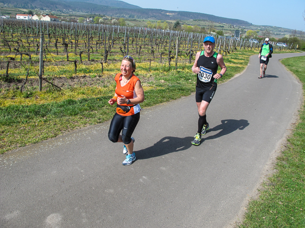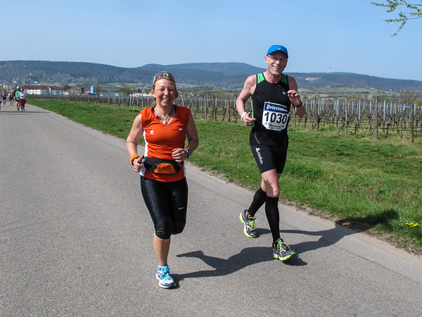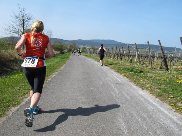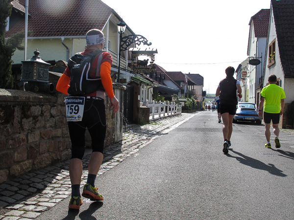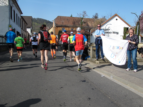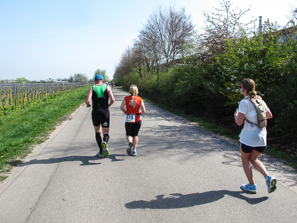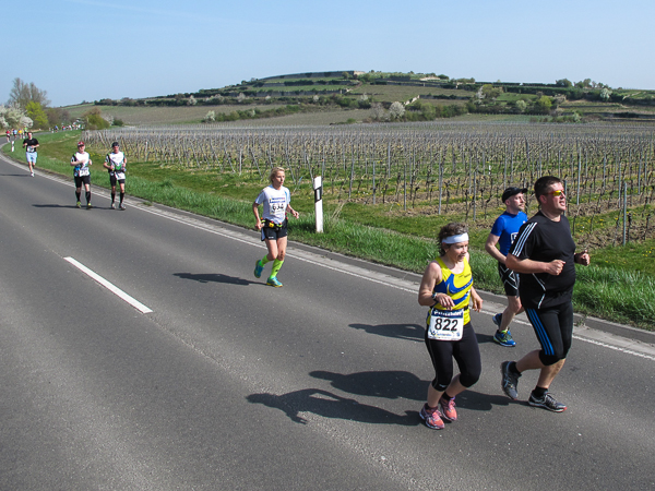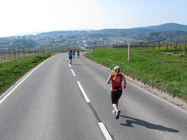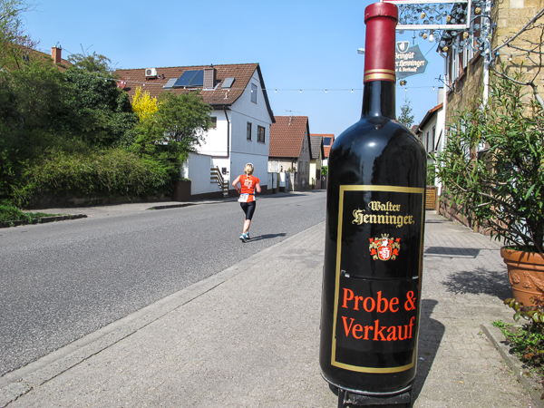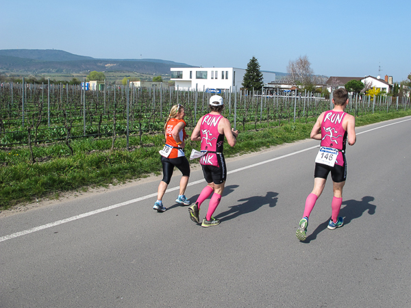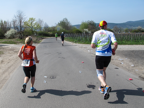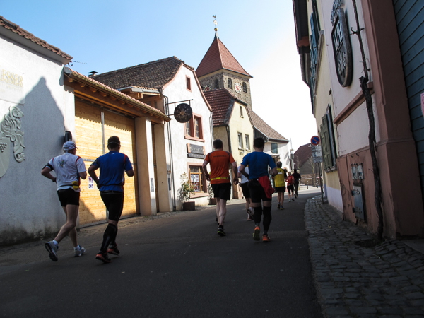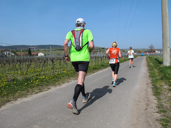 Trunken vor Glück, vielleicht aber auch einfach nicht mehr ganz nüchtern, bin ich froh, nach fünf Monaten endlich wieder einen Marathon zu laufen. Weder Verletzungen noch andere Gründe haben mich gehindert, es hat sich schlicht und einfach nur nicht ergeben. Schnell war das Frühjahr da, bald folgt Ostern und Pfingsten und schwupp die wupp ist das erste Halbjahr um. Ich tue mich immer schwer im Training und ganz besonders hasse ich einsame lange und langweilig Läufe. Es ist für mich einfacher, jede Woche einen Marathon zu laufen als 26 Wochen lang keinen. Beim Dürkheimer Laufclub regenerierte ich meine wintermüden, knirschenden Gelenke bei schönen Läufen, netter Gesellschaft und guten Gesprächen über die Rebenhügel des Leiningerlandes.