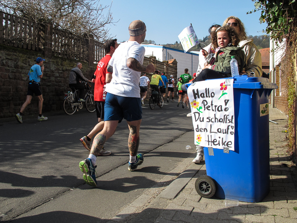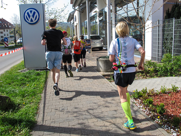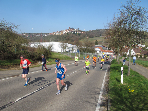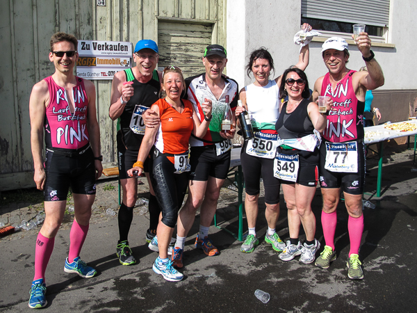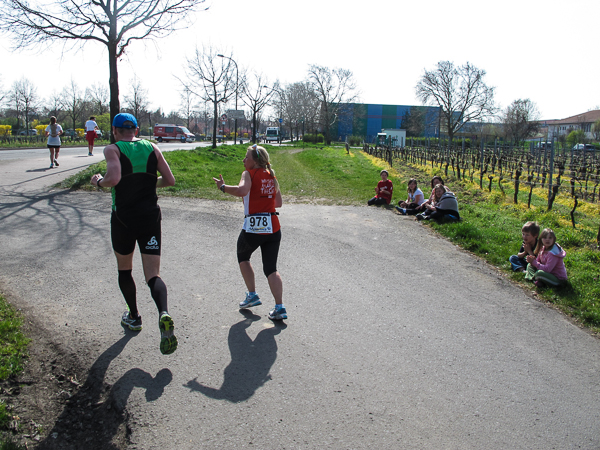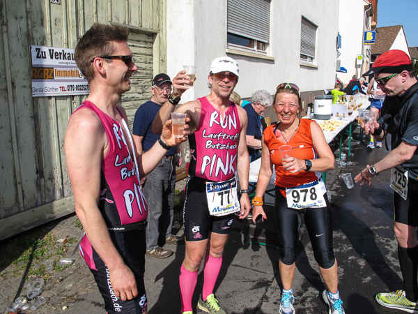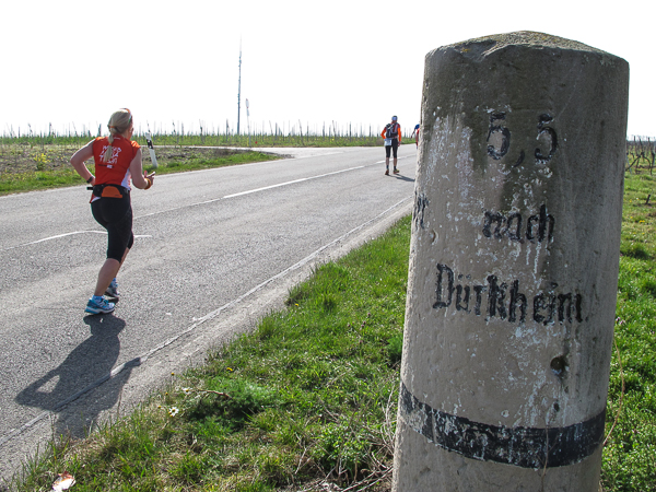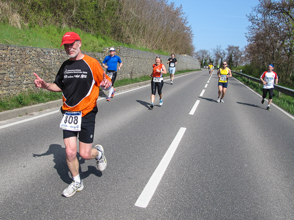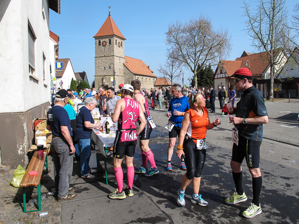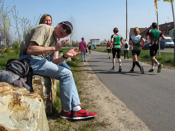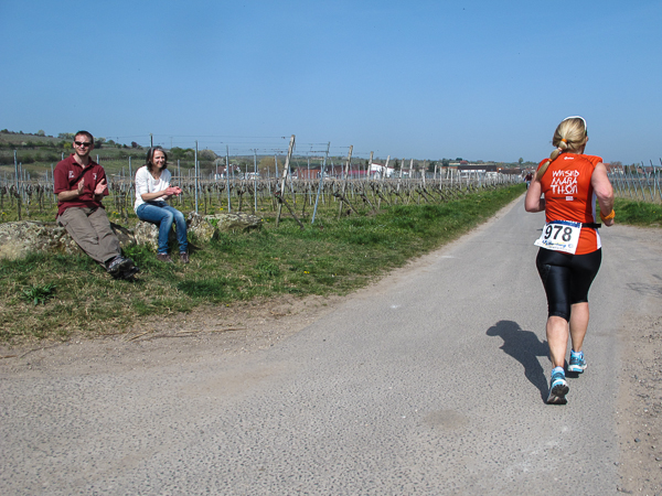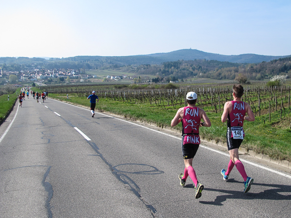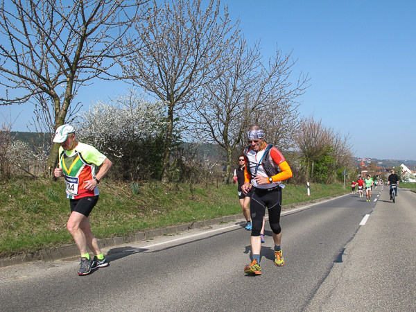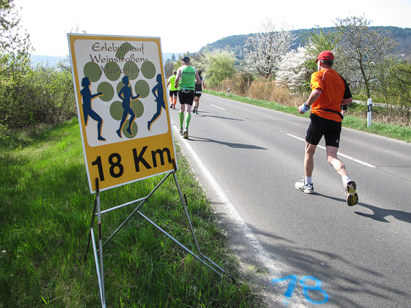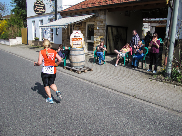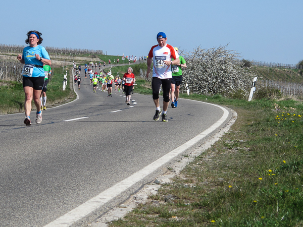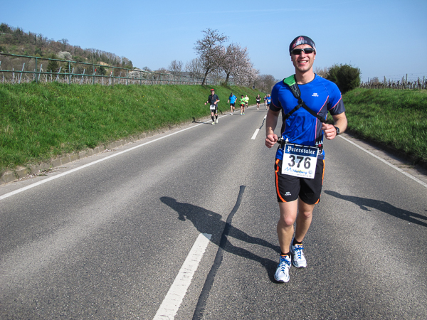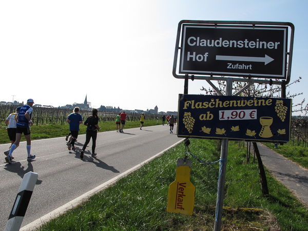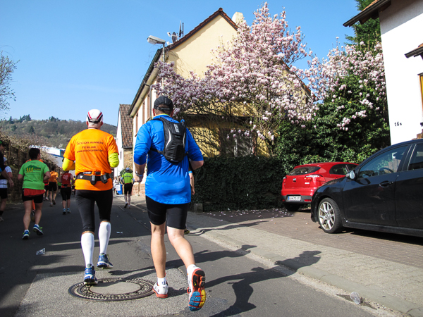 Trunken vor Glück, vielleicht aber auch einfach nicht mehr ganz nüchtern, bin ich froh, nach fünf Monaten endlich wieder einen Marathon zu laufen. Weder Verletzungen noch andere Gründe haben mich gehindert, es hat sich schlicht und einfach nur nicht ergeben. Schnell war das Frühjahr da, bald folgt Ostern und Pfingsten und schwupp die wupp ist das erste Halbjahr um. Ich tue mich immer schwer im Training und ganz besonders hasse ich einsame lange und langweilig Läufe. Es ist für mich einfacher, jede Woche einen Marathon zu laufen als 26 Wochen lang keinen. Beim Dürkheimer Laufclub regenerierte ich meine wintermüden, knirschenden Gelenke bei schönen Läufen, netter Gesellschaft und guten Gesprächen über die Rebenhügel des Leiningerlandes.