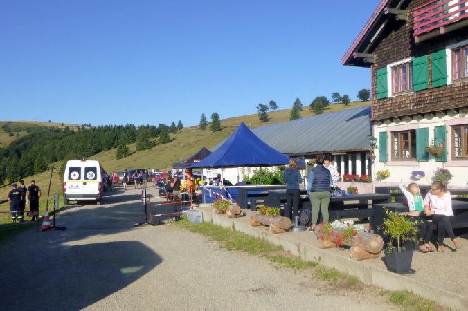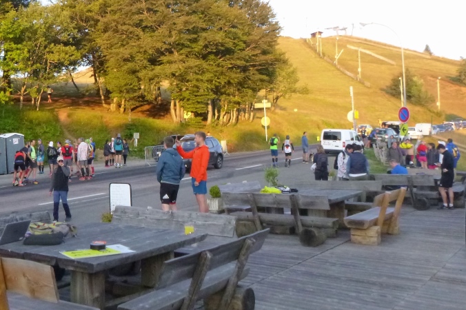 Den Startplatz Le Markstein erreiche ich schon am Freitagabend. Im Hotel Wolf gibt es bis 21.00 Uhr die Startnummern, oder eben am Samstag in der Früh. Geräumige Parkmöglichkeiten gibt es überall, Gedränge und Hektik nirgendwo. Es ist still hier oben auf 1200 m Höhe, angenehm frisch die Luft und der Blick reicht weit. Le Markstein ist ein beliebtes Skigebiet und erlebt seine wilde Zeit im Winter. Im Sommer sind es die Radler und Biker, die sich hier auf der berühmten Route des Crêtes, die über die Höhen der Vogesen führt, treffen. Und heute auch Runner und Trailer.