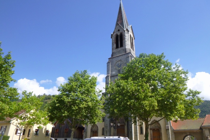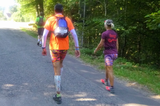 An einem schönen Aussichtspunkt kann man Saint Amarin tief im Tal unten erkennen, weit ist es noch weg. Fast unten gibt es noch zwei kleine, aber gemeine Hügel zu ersteigen, bevor wir abwärts in den Ort dürfen. Neben der Kirche liegt unser VP2, 21 km sind geschafft. Erste Ausfälle warten auf den Abtransport, vom Sani gut versorgt. Die ohne Verbände um Beine und Arme sind einfach nur fix und fertig und machen lieber Schluss.