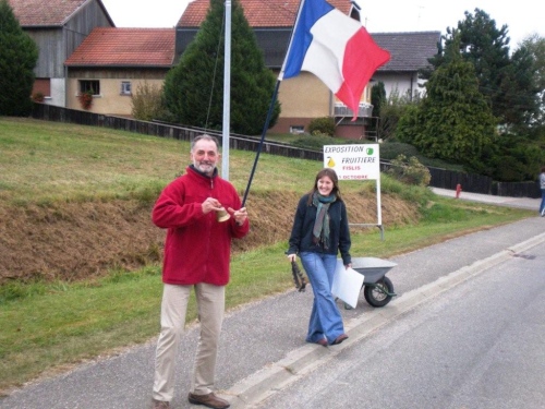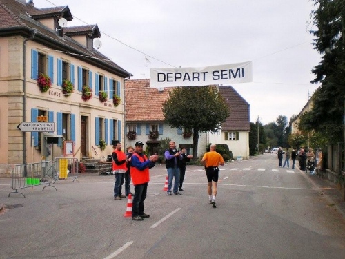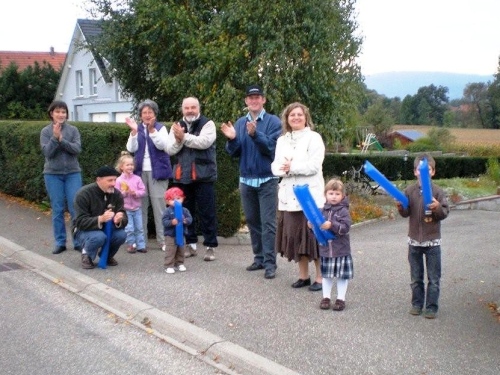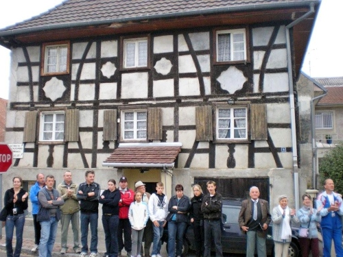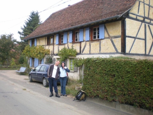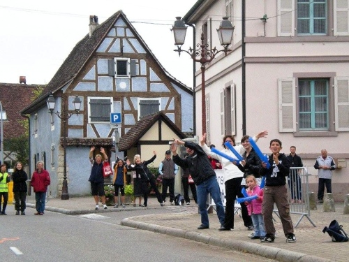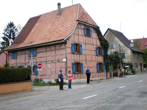 An diesem Sonntag ist in Werentzhouse nicht nur Marathontag. Ein ansehnlicher Flohmarkt ist im Aufbau, als ich auf der Anfahrt den Ort durchquere. Entsprechend sind Leute unterwegs und ist die Aufmerksamkeit groß, die uns vor der Kulisse der farbenfrohen Häuser zuteil wird, bevor es – gut verpflegt - wieder weiter übers Land geht. Am ersten Sonntag im Monat – und das ist es ja –hätte zwar das Museum der Liebenden geöffnet, ein kleines rosa Haus im Herzen des Dorfes. Es wurde von Ortsansässigen gegründet und widmet sich dem Thema Liebespaare, dargestellt auf Postkarten, Fayencen und anderen Objekten, dazu gibt es eine Sammlung alter Fotografien des Sundgaus. Aber ich mag jetzt nicht noch drei Stunden warten, bis die Pforten öffnen…