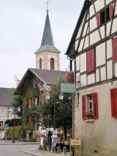 Oltingue ist die nächste Station. Ein weiterer Ort, der seine Ursprünglichkeit bewahrt hat. Blumenschmuck und Riegelhäuser, eines davon das „Maison du Sundgau“, in welchem das Bauernmuseum untergebracht ist. Zeit für die Besichtigung der kleinen spätgotischen Kirche Saint-Martin-des –champs, einem „Monument historique“ habe ich heute nicht, aber vorgemerkt ist sie.