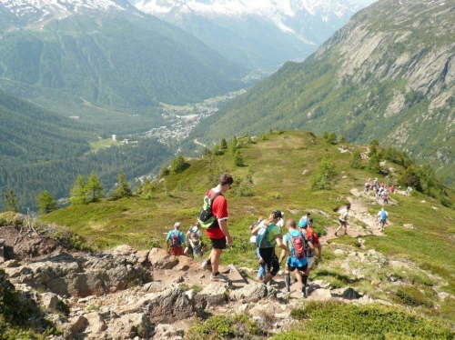 Hier oben sind Zuschauer und Helfer. Die einen loben, die anderen ermahnen, untermalt von den Klängen eines Akkordeonspielers, der sich vor der grandiosesten Kulisse niedergelassen hat. Genug trinken, Trinkblasen und Flaschen nachfüllen und Salz als Krampfprophylaxe zuführen. Mit dem grandiosen Panorama vor Augen geht es noch 200 Höhenmeter weiter bis zum Gipfel, der Aiguilette des Posettes. Die Kolonne den Berg hoch erinnert mich an den Weg auf der Eigermoräne beim Jungfrau Marathon.