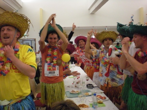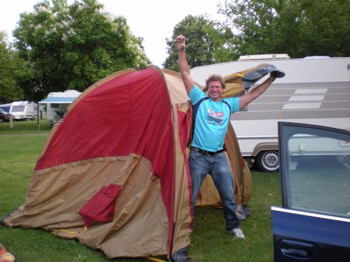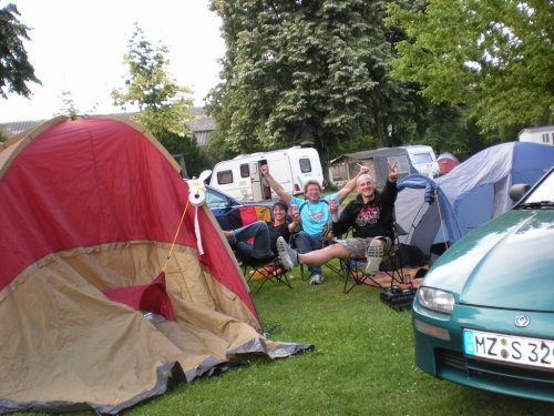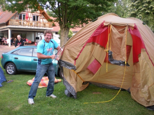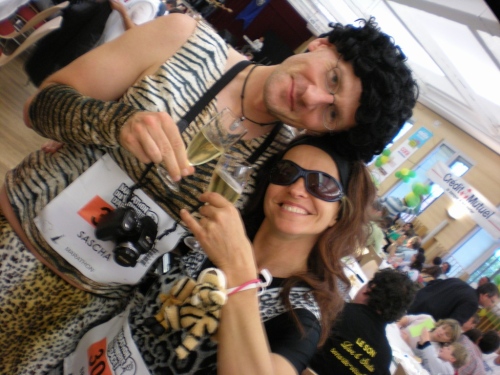Der Campingplatz (4€/Person) liegt direkt neben dem Marathon Village und dem Ziel. Das Zelt baut man nach dem Lauf ab. Brigitte, Sascha und ich gleich in die Tigerklamotten (Verkleidung ist ausdrücklich erwünscht !) und ab auf die Marathonmesse. Und total baff: Super Trinkrucksack und Gutschein für ein komplettes Menü am Vorabend und komplettes Menü nach dem Lauf. Jeweils Vorspeise, Hauptspeise, Dessert und Wein oder Bier.