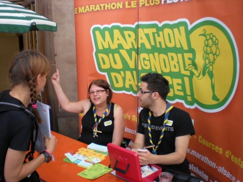 Der Marathon findet in Molsheim, westlich von Straßburg statt. Start ist auf dem Gelände des Hypermarché Cora. Nicht weit von hier ist das Familiengrab der (ursprünglich italienischen) Familie Bugatti. Von 1909 bis 1963 wurden die legendären Sportwagen hier gebaut. Heutzutage gehören originale Wagen von Ettore Bugatti zu den weltweit begehrtesten Autos, und sie erzielen Preise bis zu 10 Milionen Euro. 1998 kaufte VW die Markenrechte und baut hier in Molsheim den Bugatti Veyron 16.4.