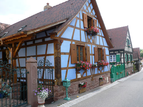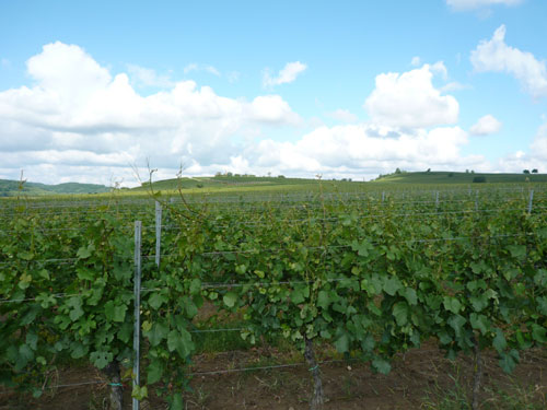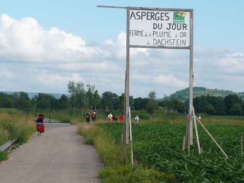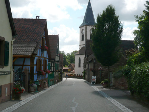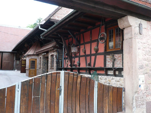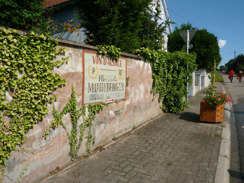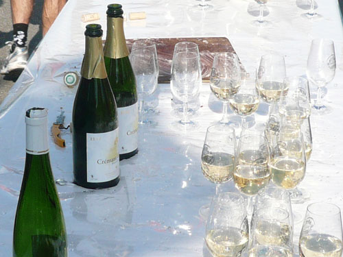 Über Dachstein führt der Weg zu Weinstation Nr. 4.Obwohl man es vom Namen vermuten könnte, sind diese Kilometer ohne nennenswerte Steigungen zurückzulegen. Auf die Station in Ergersheim habe mich richtig gefreut, hier steht der Ofen, in dem uns Flammkuchen frisch gebacken wird. Leider hab ich die Rechnung ohne die riesige Gruppe gemacht, die kurz vor mir abgezogen ist und alles Essbare ratzeputz verdrückt hat. Jan war auch dabei. Jetzt dauert es wieder etwas, bis Nachschub da ist. Gut, dann nehme ich Vorlieb mit einem exquisiten Crémant, von dem gibt es noch reichlich. Der Begriff Crémant wurde Frankreichweit eingeführt, als sich die Weinbauern der Champagne erfolgreich beim Verbot der weltweit gebräuchlichen Bezeichnung Champagner zur Charakterisierung der Flaschengärung durchsetzten. Boah, seine 12 % fahren mir für kurze Zeit in die Glieder.
