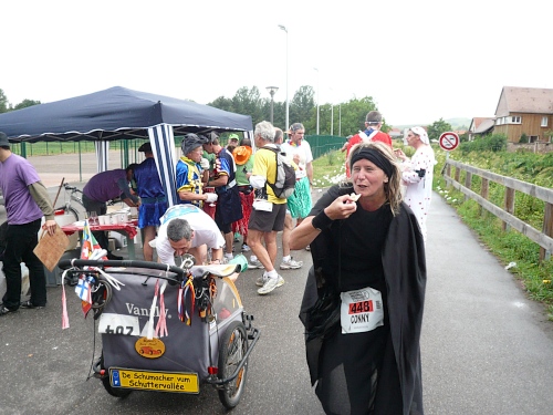 Irgendwie werde ich sentimental, mein Fanclub wird immer größer. Vielleicht liegt es daran, dass der Besenwagen näher rückt. Wer hier schnell läuft, ist selber dumm. Wir liegen uns in den Armen, heulen und vergessen die Zeit, wir sind knülle aber wir sind Läufer und das macht Spass!