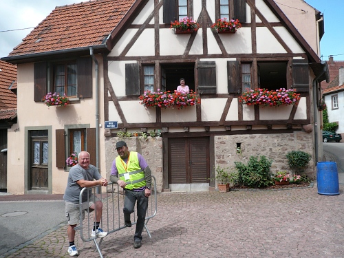Pralles Leben im Schnelldurchlauf: Störche, alte Steine, Unmengen von Blumen, liebevolle Häuser, vom Rathaus geile Mucke aus riesigen Boxen. Kinder, die abklatschen, jeder hier weiss was wir machen, ein Renault mit Lautsprechern auf dem Dach der Pogo macht hahaha. Ich laufe hier so gerne, weiss wo die süssesten Kirschen hängen und klaue mir die prallsten Johannisbeeren. Ich liebe dieses Land! Wisst ihr, was ein Maulbeerbaum ist? Die Dinger wachsen hier, urtümlich, Brutstätte unserer Zitronenfalter, also den richtigen, nicht diese blöden Kohlweißlinge. Diese hübschen Falter. Mann!