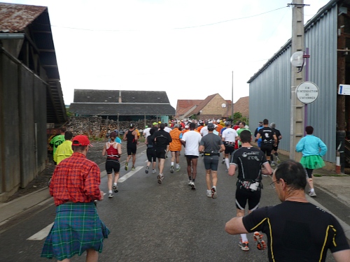 Die Laufgemeinschaft hat sich gefestigt. Für die nächsten 10 Kilometer werden wir unzertrennlich sein und nächstes Jahr heiraten wir alle! Ich lach mich kaputt! Das gibt eine Massenhochzeit beim Marathon du Vignoble d‘Alsace und der Pater Tobias macht den Verbindungsoffizier.