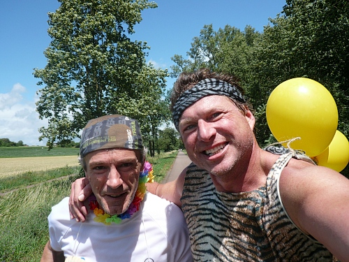 Bei km 2,5 - ja, was denn? Es ist noch nicht mal 8 Uhr. Der Sylvaner ist Kümmel für 10 Meter Darm, oder wieviel da bei mir rebellieren, es könnten auch 100 Kilometer sein. Zack Zack Zack, Jaques Chirac, oder wie der Typ heisst und Ruhe ist im Karneval! Klaus wieselt noch irgendwie wie so ein junger Hund vor mir rum und macht Fotos, ist dann aber ganz schnell weg. Ich habe ihn nie wieder gesehen.