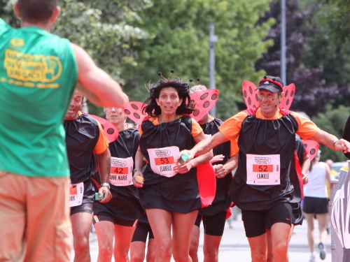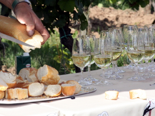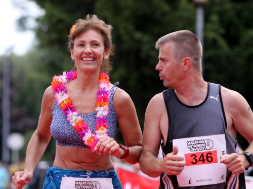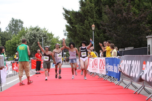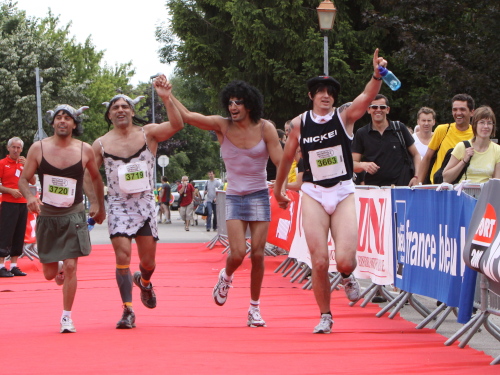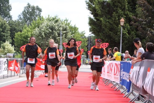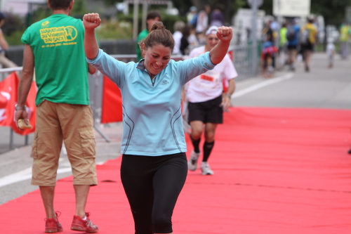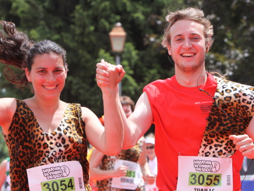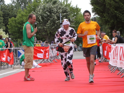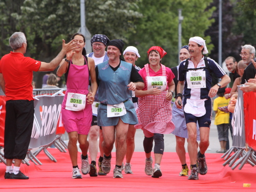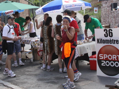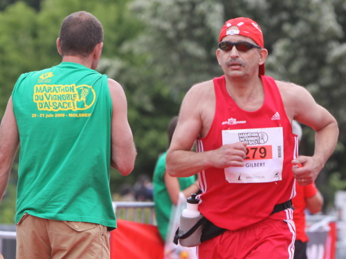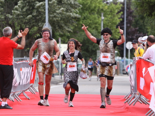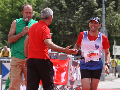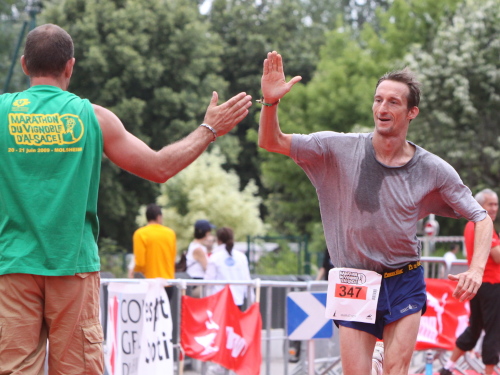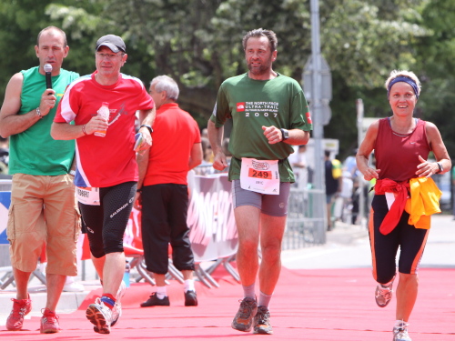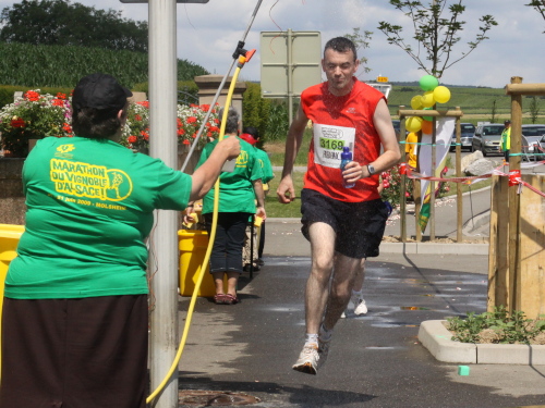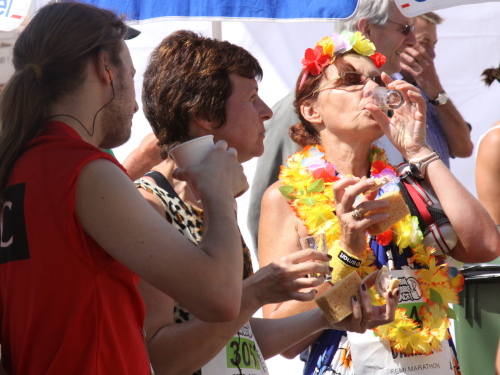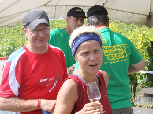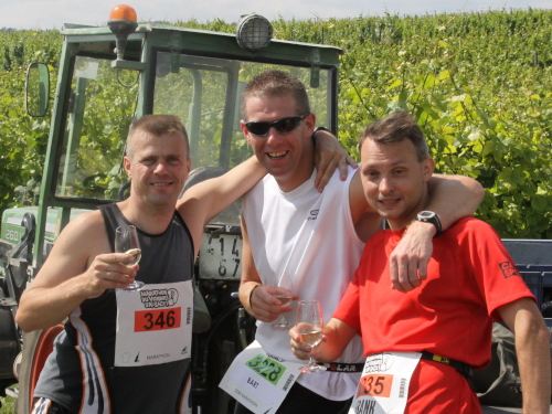 Auf dem Marathon gibt es 11 Verpflegungsstellen mit regionalen Spezialitäten und den dazu passenden Weinen (mehr dazu in meinem Laufbericht von 2007). „Ernsthaftläufer“ und Abstinenzler müssen ebenfalls weder verhungern noch verdursten. Im Ziel bekommt jeder Marathoni einen „Marathon-Teller“ mit einem „best-of“, Nachtisch und Getränk inklusive. Wer unterwegs auf die kulinarischen Genüsse verzichtet, stattdessen Gas gibt und das Rennen gewinnt, wird mit Wein aufgewogen.