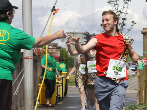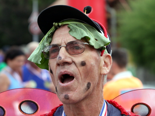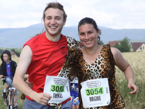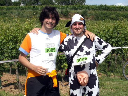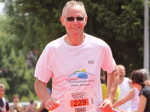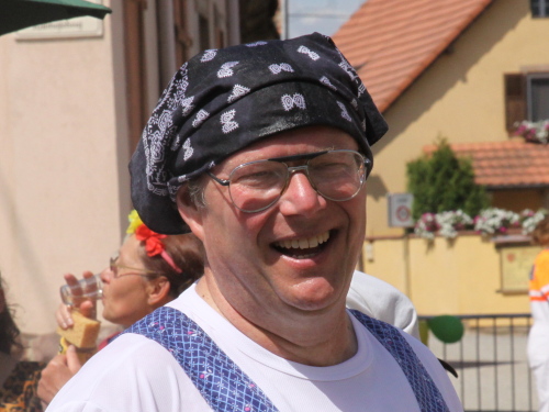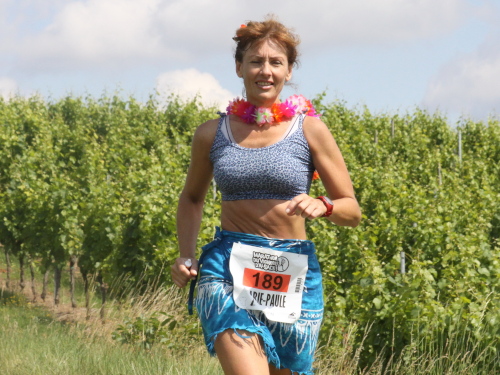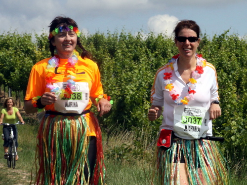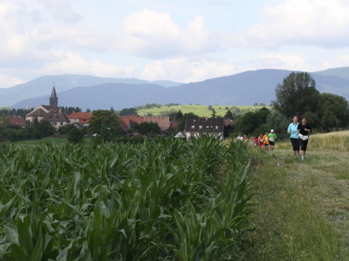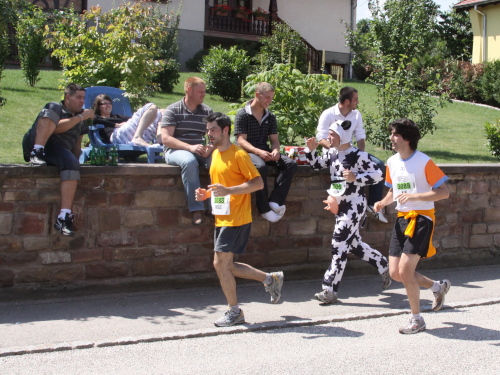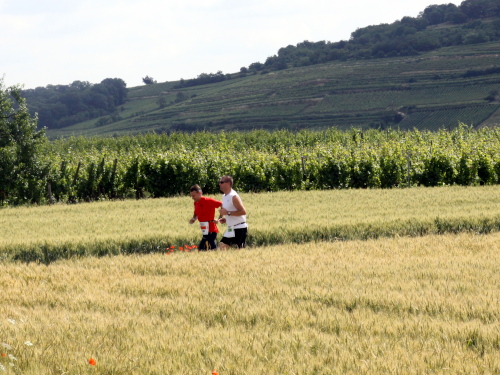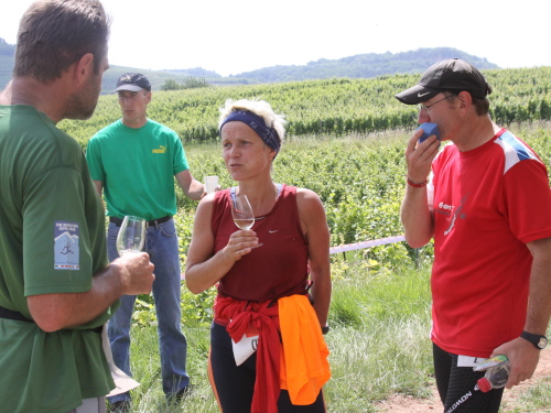Wenn jetzt einer meint, das sei nichts für ihn, weil er als „Ernsthaftläufer“ zwar auf Wein und Pastete unterwegs verzichtet, es aber zum Sieg trotzdem nicht reicht, liegt schief. Für ihn gibt es eine landschaftlich äußerst attraktive und abwechslungsreiche Strecke, die Weinberge, Obstgärten, Wiesen und Felder ebenso wenig ausspart wie kleine Weindörfer mit den typischen, Blumen geschmückten, herrlichen alten Fachwerkhäusern. Und er begegnet unterwegs Menschen, die sich freuen, dass er da ist, ihn begeistert anfeuern und bewundern. Ok, etwas Energie muss investiert werden. Die Strecke ist nicht eben und das Geläuf stellenweise ziemlich rustikal. Aus Erfahrung weiß ich aber jetzt, dass sie leichter zu laufen als mit dem Rad zu befahren ist.
