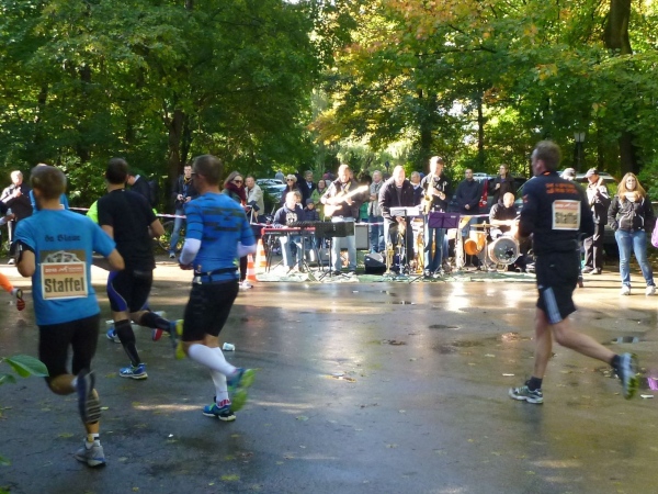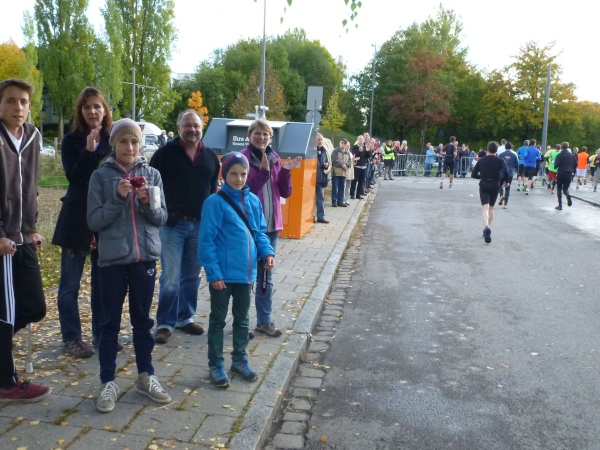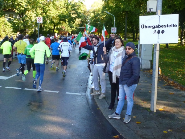 Am Cosimabad (U-Bahn) dann wieder viele Zuschauer und viel Stimmung am Verpflegungsstand. Kurz danach dann der Halbmarathonpunkt und eine große Staffelwechselstelle. Um 14:00 Uhr fällt hier der Startschuss für die 21,1 Kilometer.