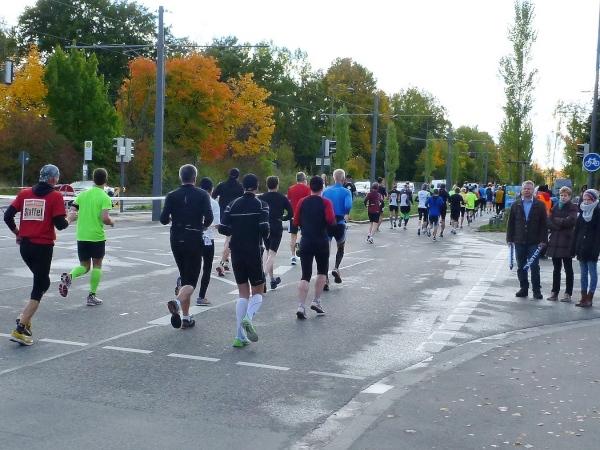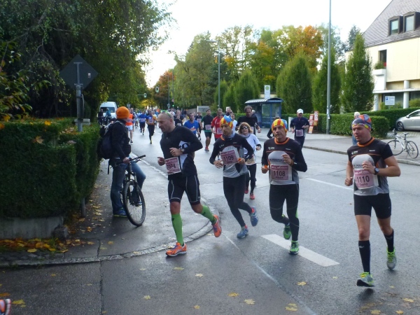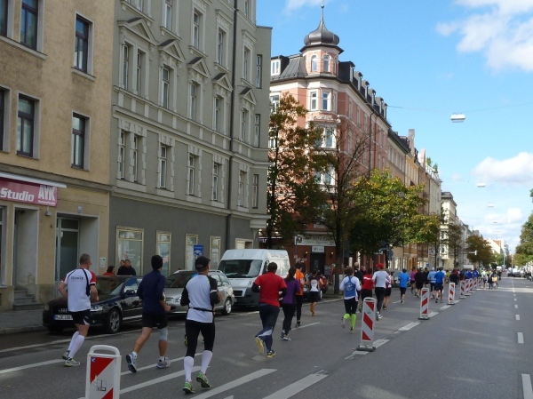 Wir kommen ins Innenstadtgebiet. In der Rosenheimer Straße können sich die Anwohner auf den einzigen Tag im Jahr ohne Straßenverkehr freuen. Immerhin ist das hier eine stark befahrene Einfallstraße ins Zentrum. Ich beglückwünsche die Zuschauer laut zu ihrem „autofreien Sonntag“ und ernte nur Kopfschütteln. Schön wäre natürlich, wenn die Anlieger die Sportveranstaltung für ein Straßenfest nutzen würden, wie man das von vielen Stadtmarathons kennt. Kneipen gibt es ja hier genug. Ich habe auch schon mal diesbezüglich an den Bezirksausschuss Au-Haidhausen geschrieben. Dem reicht aber das jährliche Seifenkistlrennen im Frühjahr als Event völlig aus. Ich gebe die Hoffnung nicht auf. Unser Vorbild kann man beim Hamburg Marathon besichtigen. Ach ja, in Haidhausen wohne ich übrigens.